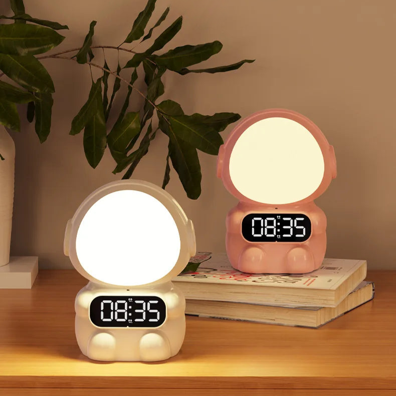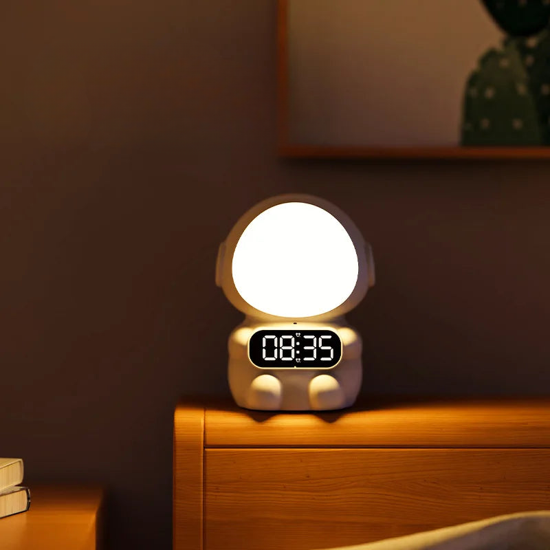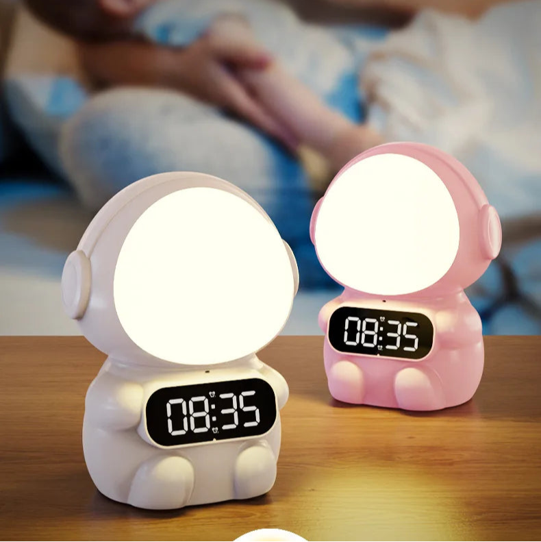 Et alsidigt Astronaut vækkeur til børn med natlampe