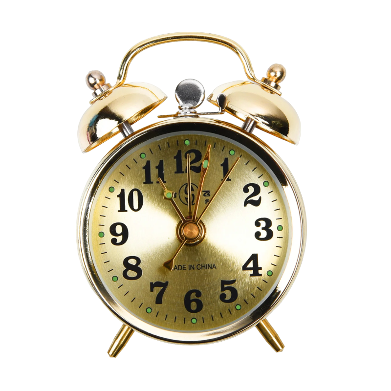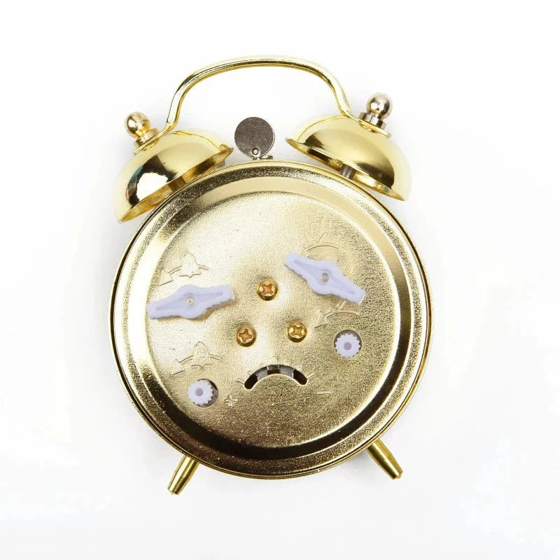 Gør din morgenrutine bedre med et Guld mekanisk vækkeur med to klokker.