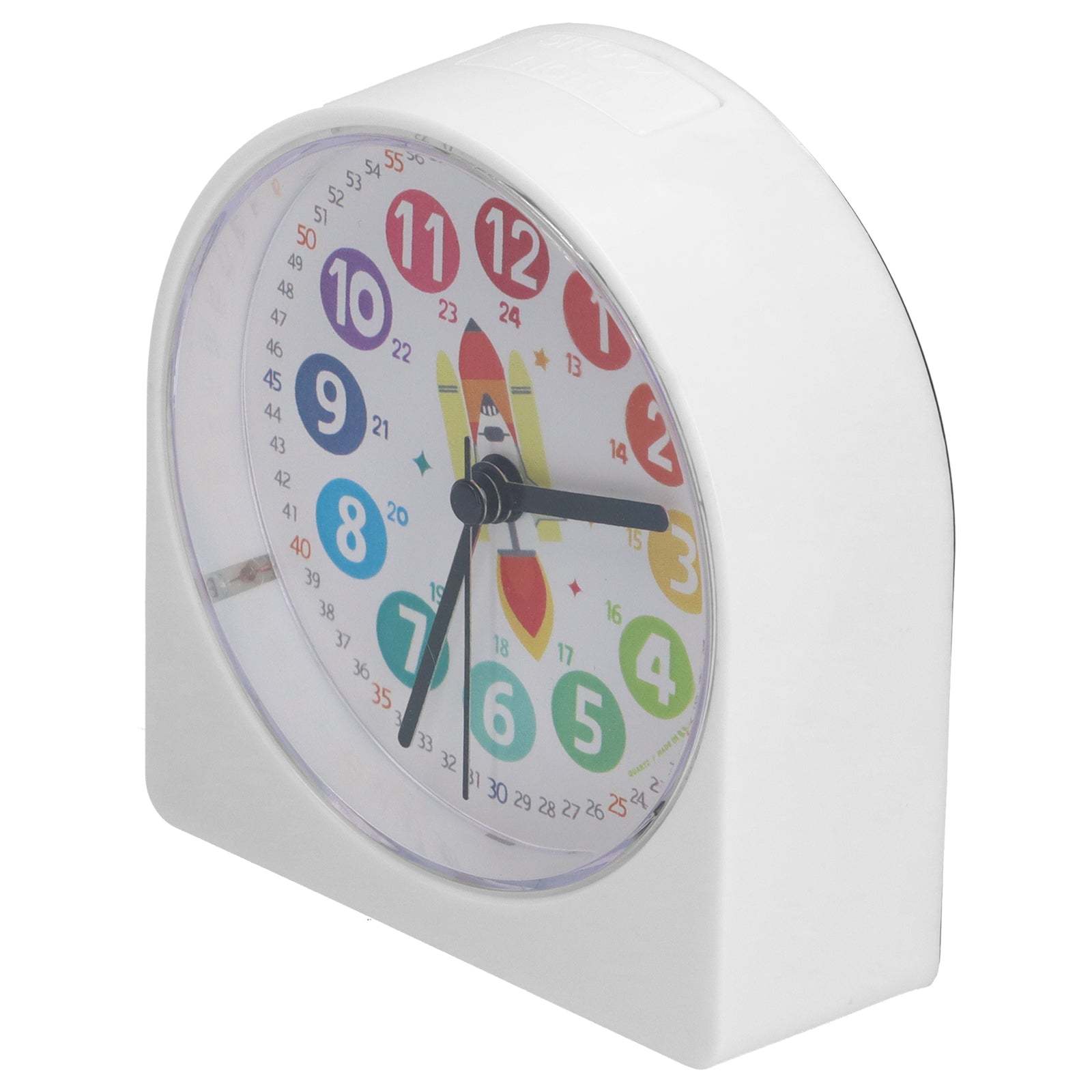 Vores Læringsur til drenge med raket er mere end bare et pænt stykke legetøj. Det er et pædagogisk redskab, der er skræddersyet til at gøre tidsindlæring let og sjovt for børn. De store, farverige tal for timerne og de mindre tal for minutterne, samt tydelige markeringer for kvart- og halvtimer, guider dit barn skridt for skridt. Den charmerende raket-illustration stimulerer fantasien og gør uret til et fast og elsket element på børneværelset. Ved at integrere leg med læring, hjælper uret dit barn med at opbygge en solid forståelse for tid, som er en fundamental færdighed i hverdagen. Det fremmer selvstændighed og rutiner, da dit barn hurtigt vil kunne aflæse, hvornår det er tid til leg, måltider eller sengetid.