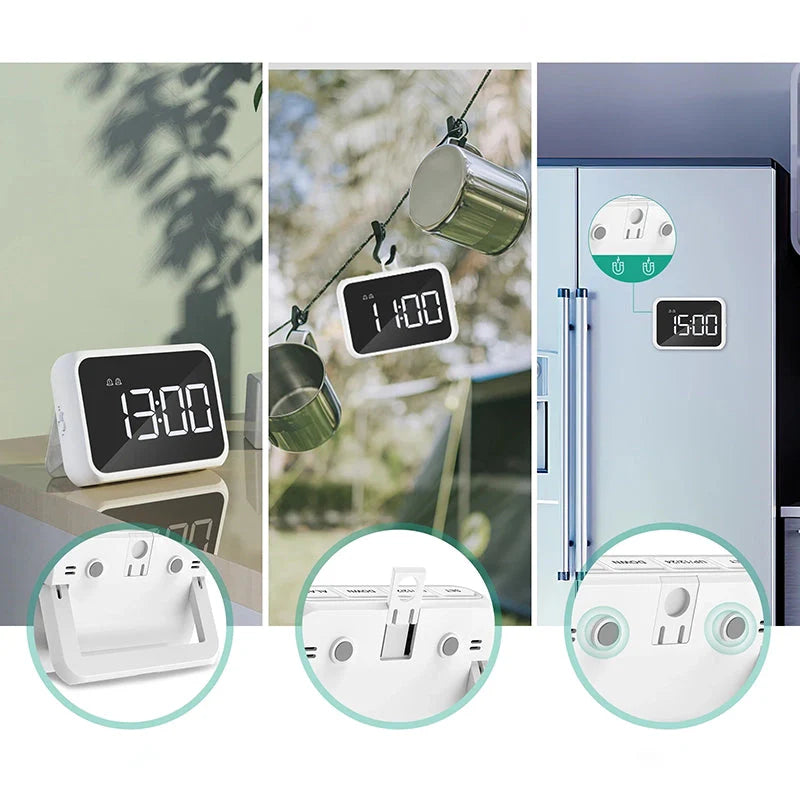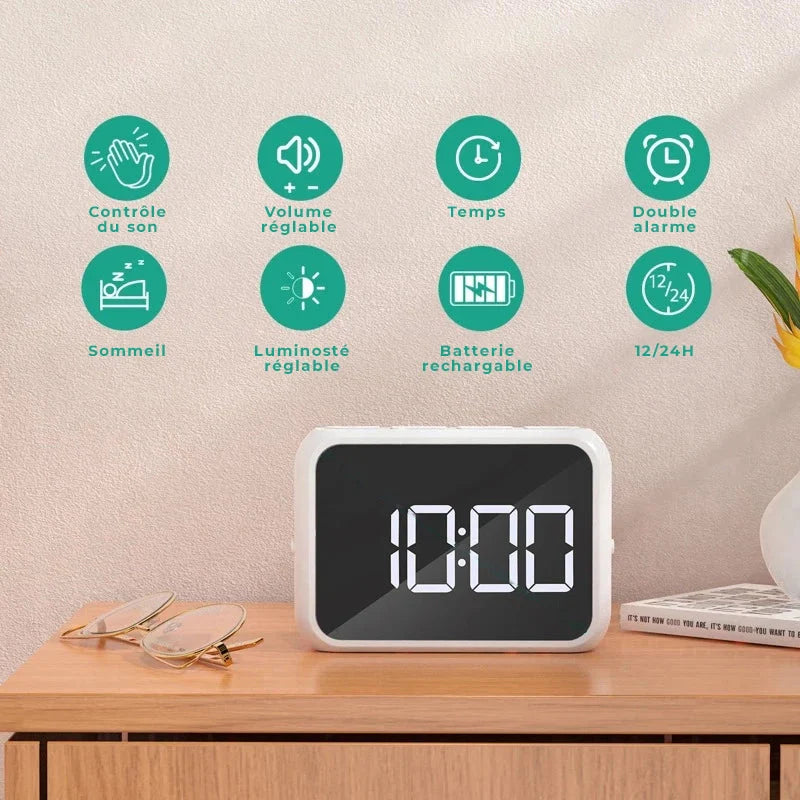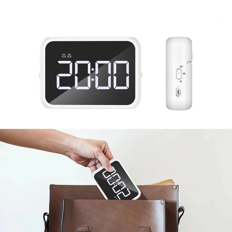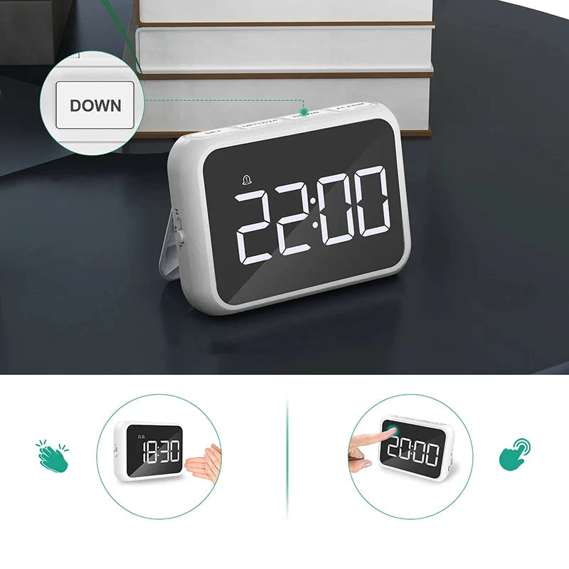 Oplev elegance og funktionalitet med vores Lille digitalt vækkeur med spejldisplay. Designet til at gøre din morgen mere behagelig og starte dagen med stil, kombinerer den raffineret design med praktisk anvendelighed.