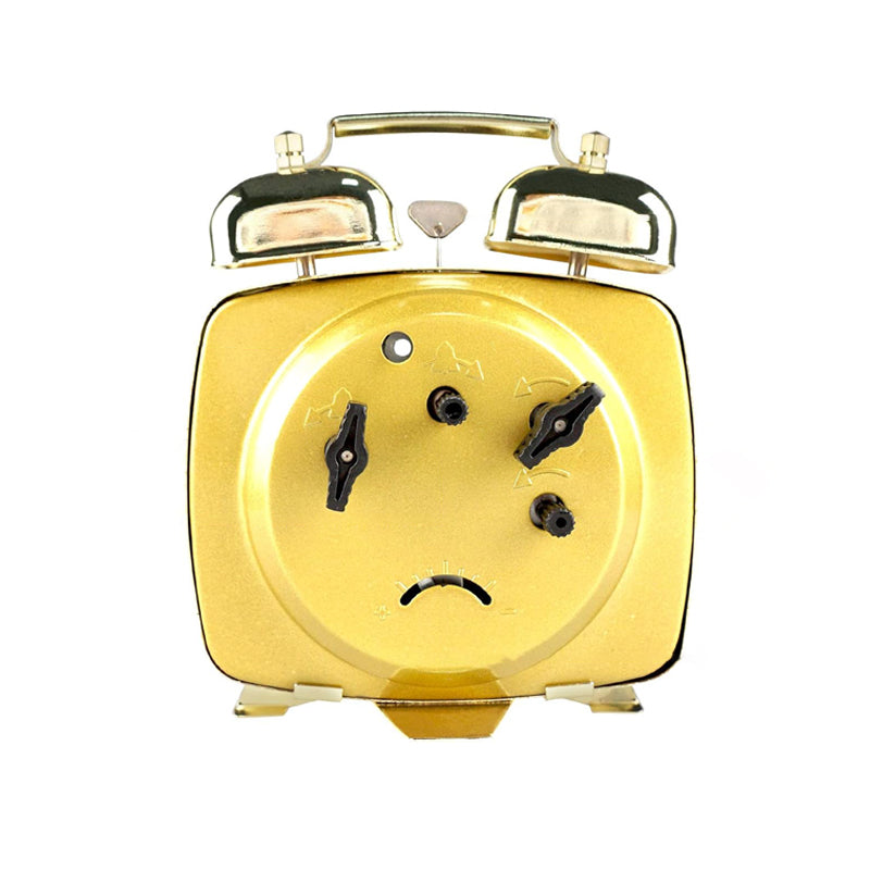 Et Lille firkantet mekanisk vækkeur i guld, der vækker minder