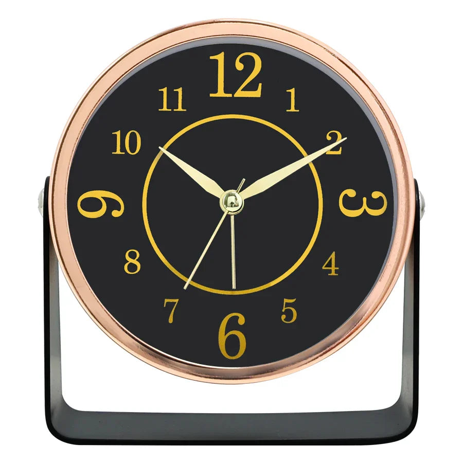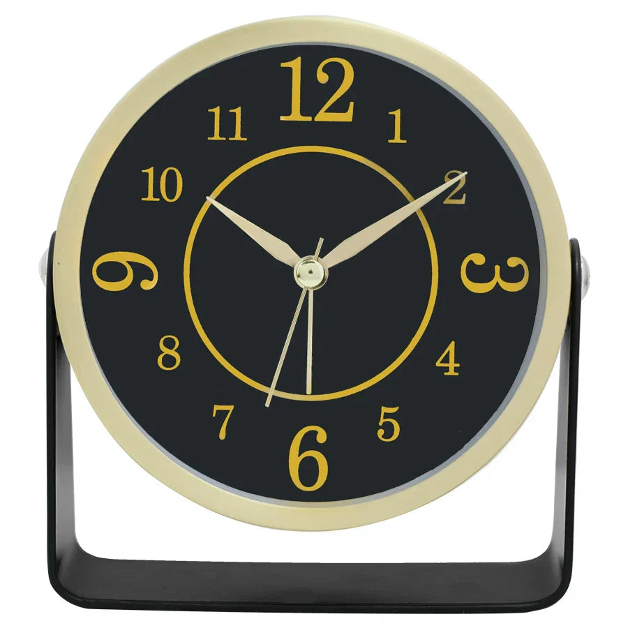 Dette vækkeur er designet med fokus på enkelhed og elegance. Den sorte urskive kontrasterer smukt med de gyldne tal og visere, hvilket gør det let at aflæse tiden, selv på afstand. Den slanke, guldfarvede ramme og den sorte metalfod fuldender det moderne udtryk, der passer perfekt ind i enhver indretningsstil – fra det klassiske til det hypermoderne. Vi har skabt et ur, der både er funktionelt og en fryd for øjet, og som vil holde i mange år fremover.