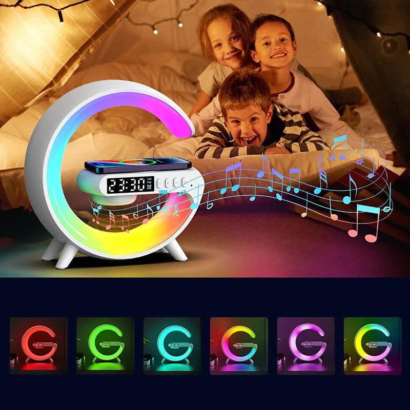 Start din dag på den bedste måde med vores multifunktionelle lampe. Den integrerede vækkeurfunktion sikrer, at du vågner blidt og behageligt. Ikke mere irriterende alarmlyde! Den indbyggede trådløse oplader giver dig mulighed for at oplade din smartphone, mens du sover, så den er klar til brug, så snart du står op. Du behøver ikke længere at lede efter kabler eller en separat oplader – alt er samlet ét sted for din bekvemmelighed. Den farverige LED-belysning skaber en beroligende atmosfære og kan justeres efter dit humør, hvilket gør den til en uundværlig del af dit soveværelse.