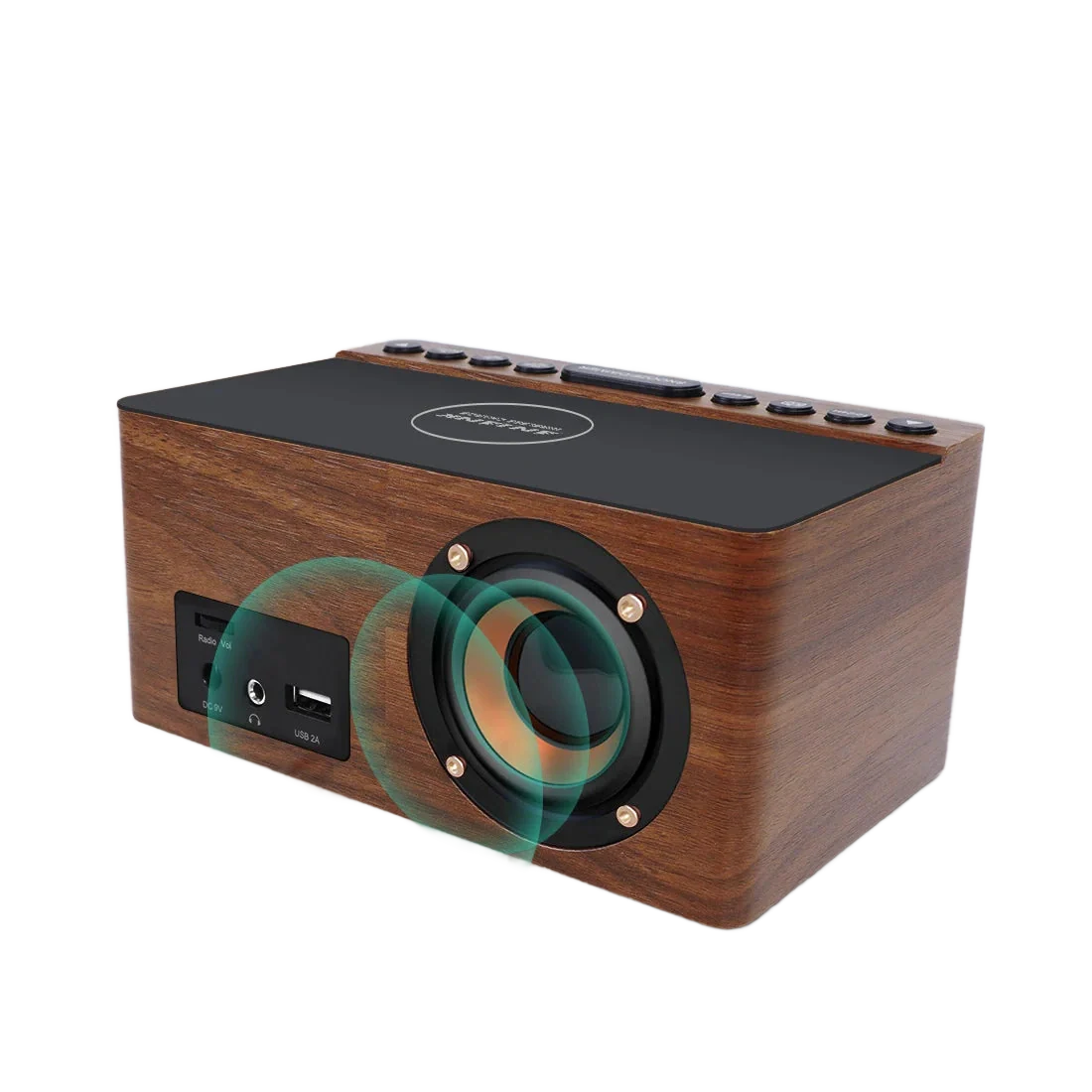 Nøglefordele ved vores Radiovækkeur i træ med trådløs opladning: