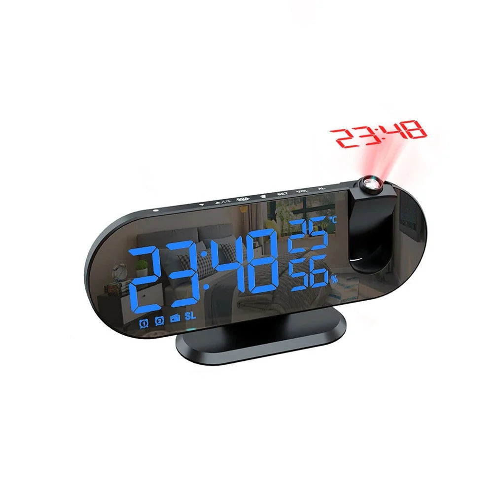 Træt af kedelige vækkeure? Denne smarte clockradio med projektor er den perfekte løsning for enhver dreng, der ønsker en mere spændende start på dagen. Udover at vise tiden tydeligt på den spejlede skærm, kan den også projicere klokkeslættet op på væggen eller loftet. Forestil dig at vågne op til tiden, der svæver over dig – det er både praktisk og super cool! Den elegante sorte farve og det moderne design passer perfekt ind på ethvert drengeværelse, og med indbygget temperatur- og fugtighedsmåler får du også et bedre overblik over indeklimaet.
